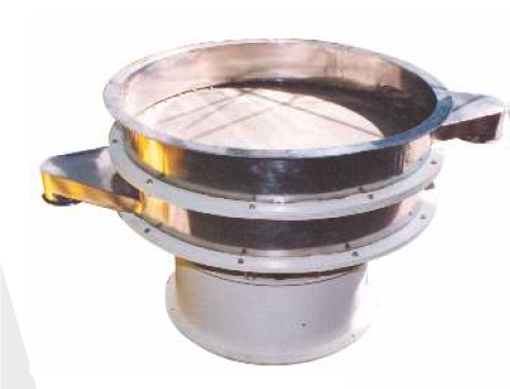 Spring loaded vibro sieve with special gyro rotating motor, SS-304 sieving media for powder raw materials sieving, oversize and undersize chutes complete with sturdy circular base frame